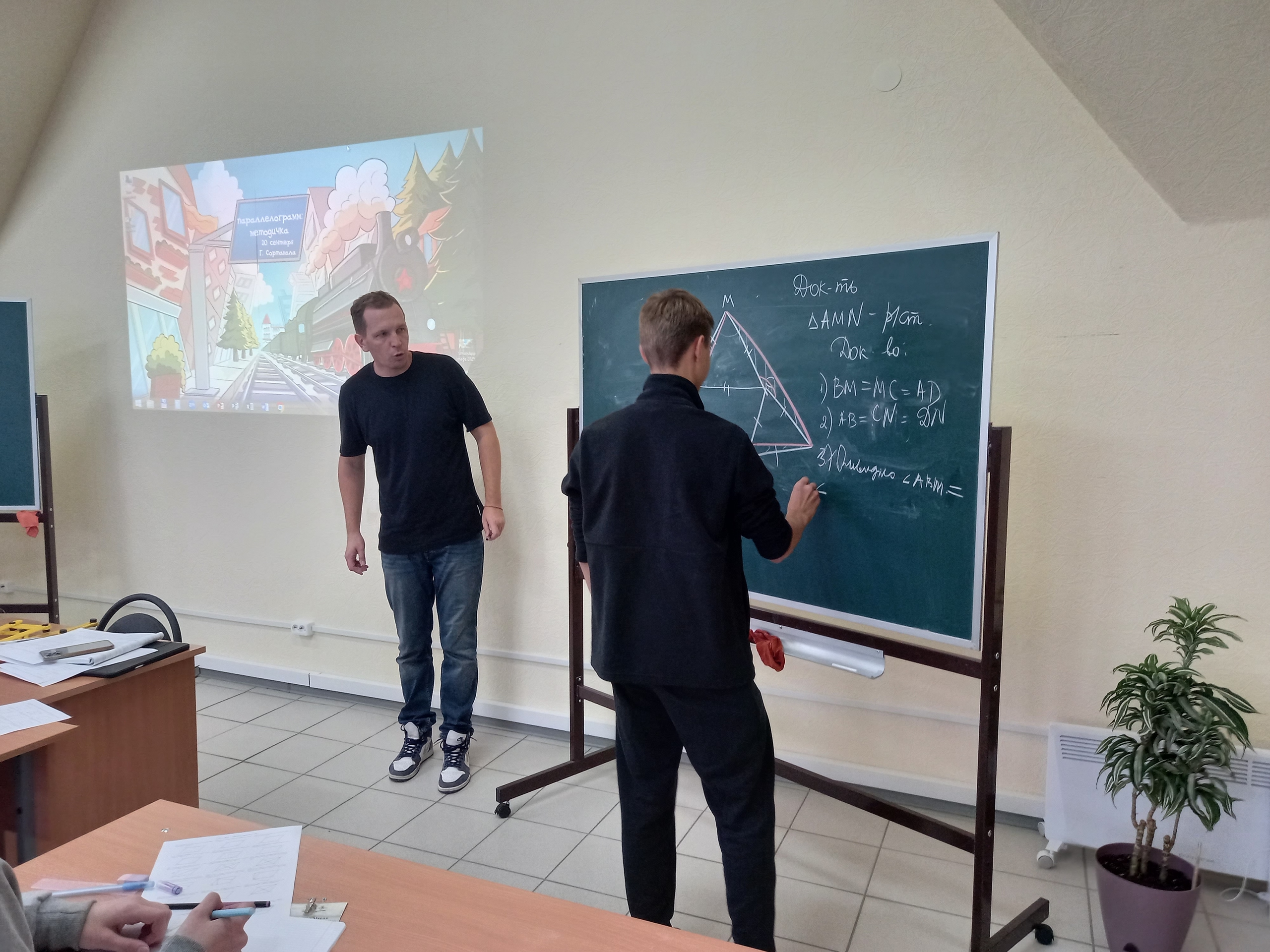 Один из дней Образовательной экскурсии обучающихся 8 В класса московской школы №1520 им. Капцовых проходил в Информационно-методическом центре. 20 сентября к гостям присоединились сортавальские восьмиклассники на мастер-классе "Параллелограмм. Методичка". Выражаем огромную благодарность Алексею Владимировичу Доронину и Наталье Анатольевне Бугаевой, учителям московской школы, за высокий уровень проведения занятий. Школьники узнали много нового и интересного при изучении этой важной геометрической фигуры. Спасибо нашим учителям математики, которые активно участвовали в мастер-классе вместе с учениками. | |